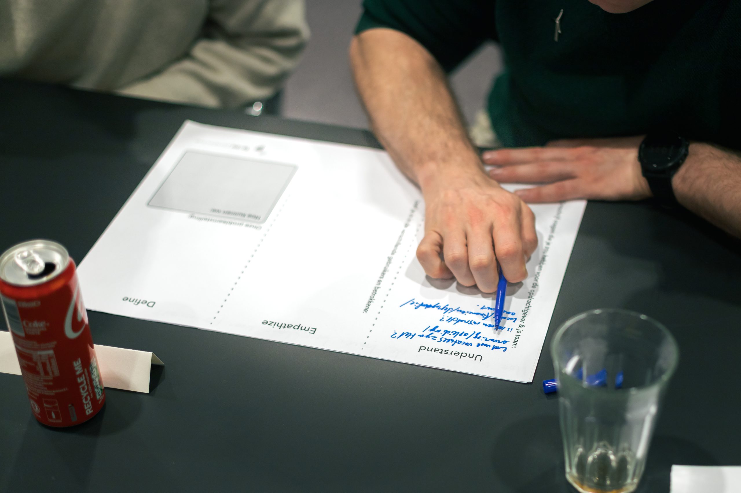 In plaats van direct naar een oplossing te zoeken, doorliepen de deelnemers de verschillende fases van Design Thinking. Ze startten met inleven: Wie zijn er eigenlijk allemaal betrokken bij dit probleem? Wat zijn hun wensen, zorgen en behoeften?
